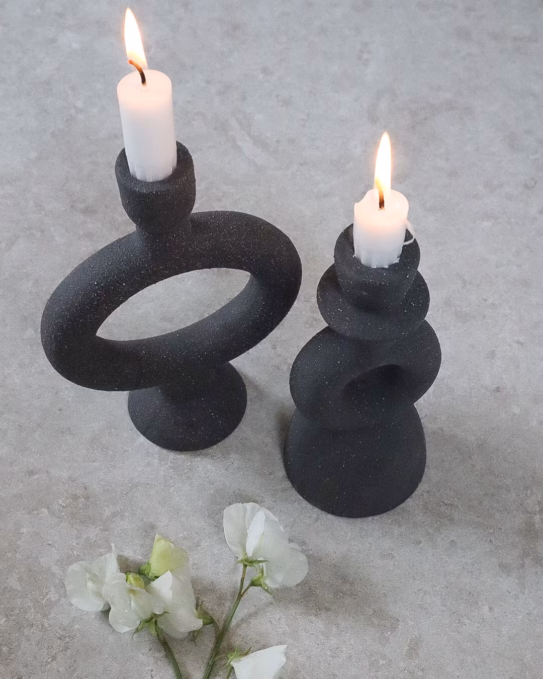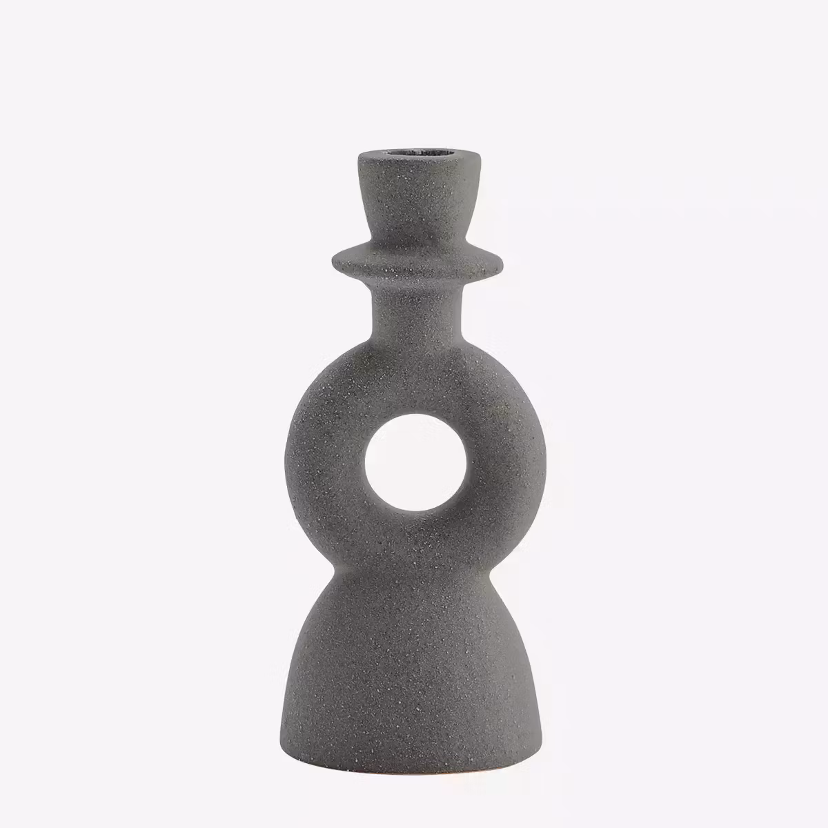 Snyggt designad ljusstake från Madam Stoltz.Ljusstaken är antracitgrå och har en matt yta med stenliknande struktur.PRODUKTINFORMATIONStorlek: Höjd 18 cm M