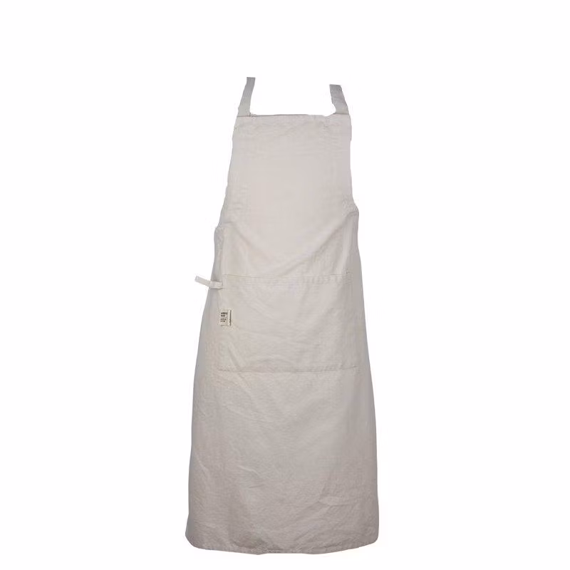 Förklädet har en praktisk ficka framtill och ett knytband i midjan som gör det bekvämt att bära.