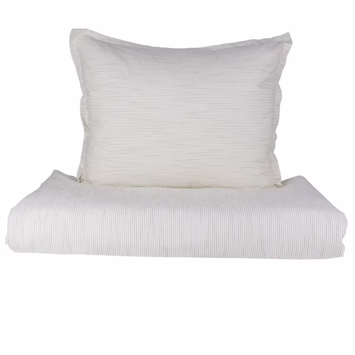 Benvitt bäddset med ett beige lite vågigt smalrandigt tryck.